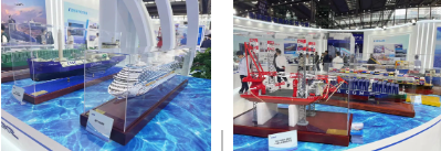 重點展示奮力摘取造船業(yè)最后一顆明珠的首制國產大型郵輪,以風、光、甲醇裝備等為主體的綠色船舶等高端海洋裝備、以“商業(yè)模式創(chuàng)新+創(chuàng)新技術應用”為引領的海洋文旅、深海養(yǎng)殖、海上風電等新興海洋經濟裝備、踐行“服務國家戰(zhàn)略”企業(yè)使命的與自然資源部和廣東省合作項目成果等,展現了中國船舶集團作為世界第一造船集團的總體實力、企業(yè)使命。