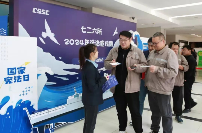2024年是新中國第一部憲法頒布70周年,今年12月4日是第十一個國家憲法日。按照中央宣傳部、司法部、全國普法辦《2024年全國“憲法宣傳周”工作方案》的部署要求,中國船舶集團有限公司以“大力弘揚憲法精神,推動進一步全面深化改革”為主題開展法治宣傳周活動,深入學習宣傳貫徹習近平法治思想,弘揚憲法法治精神,宣貫法治央企建設要求和集團公司“懸規植矩、循序善治”特色法治文化,為建設世界一流法治企業營造濃厚的法治氛圍。