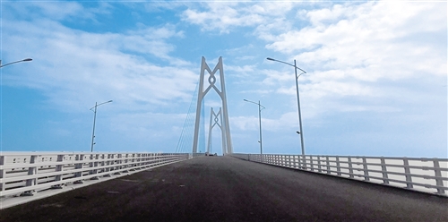 港珠澳大橋主體工程包含22.9公里主體跨海橋梁及6.7公里的沉管隧道。當(dāng)記者坐上汽車(chē),從珠海洪灣這端駛上大橋,感受到的是雙向六車(chē)道的平坦通暢。這座前后都望不到頭的大橋上,建有3段斜拉橋,分別是“風(fēng)帆”“海豚”“中國(guó)結(jié)”造型,寓意深遠(yuǎn)。
