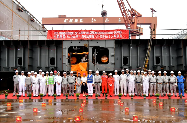 近日,滬東中華建造的又一艘優(yōu)化型17.4萬(wàn)立方米液化天然氣(LNG)船在長(zhǎng)興造船二號(hào)船塢舉行入塢儀式。該船入塢,標(biāo)志著優(yōu)化型LNG船項(xiàng)目生產(chǎn)建造進(jìn)入一個(gè)新階段。