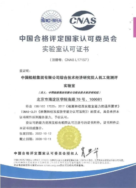 近日,中國船舶集團旗下中船綜合院人機工效測評實驗室(以下簡稱“實驗室”)獲得中國合格評定國家認可委員會(CNAS)實驗室認可證書,成為國內(nèi)首家具備國家認可人機工效測評能力的試驗機構(gòu)。